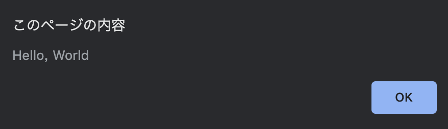 アラート文を出力する関数です。ユーザーに何かしらのメッセージを読ませる目的で利用されます。